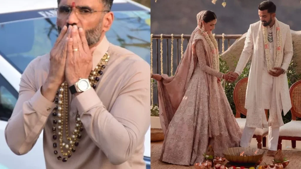 अथिया की शादी के बाद सुनील शेट्टी ने सभी मीडिया फोटोग्राफर्स को मिठाइयां भी बांटी थी। इस दौरान एक्टर ने कहा था- अब आधिकारिक तौर पर केएल राहुल और अथिया की शादी हो चुकी है और अब मैं ससुर बन गया हूं। इस खास मौके पर एक्टर साउथ इंडियन स्टाइल में नजर आए। उन्होंने क्रीम कलर का धोती-कुर्ता पहना था।