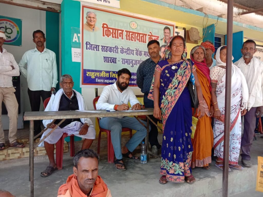 आज जब रामानुजगंज के केंद्रीय सहकारी बैंक जाकर देखा गया तो वहां पर कांग्रेस पार्टी के विधायक प्रतिनिधि केंद्रीय सहकारी बैंक के राहुल दत्त सिंह टेबल कुर्सी लगाएं ग्रामीणों का और किसान भाइयों का निकासी पर्ची भर रहे थे। इस संबंध में जब उनसे पूछा गया कि आप यहां क्या कर रहे हैं तो उन्होंने बताया कि जिला बलरामपुर रामानुजगंज के संवेदनशील विधायक ने किसानों की सहायता के लिए मुझे प्रतिनिधि बनाकर नियुक्त किया है और इसी वजह से मैं उनका आभारी हूं की दूर-दूर से आए हुए किसानों का कुछ मदद कर पा रहा हूं। कितने किसान अनपढ़ होते हैं और वह निकासी पर्ची नहीं भर पाते साथ ही साथ बैंक कर्मियों का व्यवहार भी पहले ठीक नहीं था अब मैं जब से बैठा हूं बैंक कर्मी भी किसानों की सहायता कर रहा है। कोई किसान किसी दूसरे किसान का चेक लेकर चले आते हैं। उसके लिए हम लोगों ने मिलकर यह व्यवस्था किए है कि वह पैसा आरटीजीएस के माध्यम से किसान के खाते में अन्य बैंक में चला जाए और वह अपना पैसा कहीं से भी निकाल ले जहां उनका खाता है।