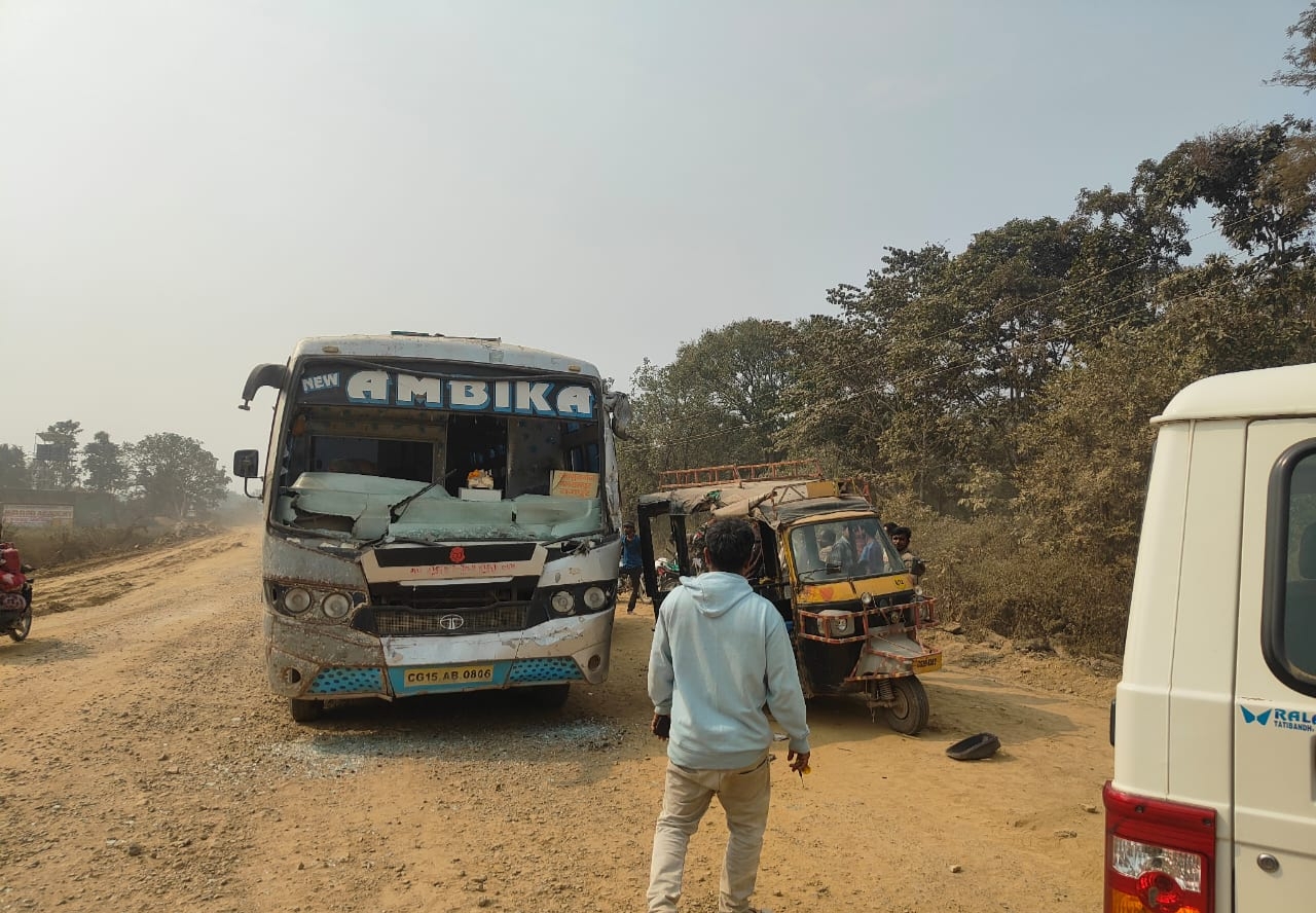 बलरामपुर, विष्णु पांडेय। अंबिकापुर से रामानुजगंज आ रही अंबिका यात्री बस आज बुधवार को एक बड़े हादसे का शिकार हो गई। रामानुजगंज आईटीआई कॉलेज के पास बस ने एक ट्रक को टक्कर मार दी। इस हादसे में कई दर्जन यात्री घायल हो गए, जिनका इलाज सामुदायिक स्वास्थ्य केंद्र रामानुजगंज में जारी है।