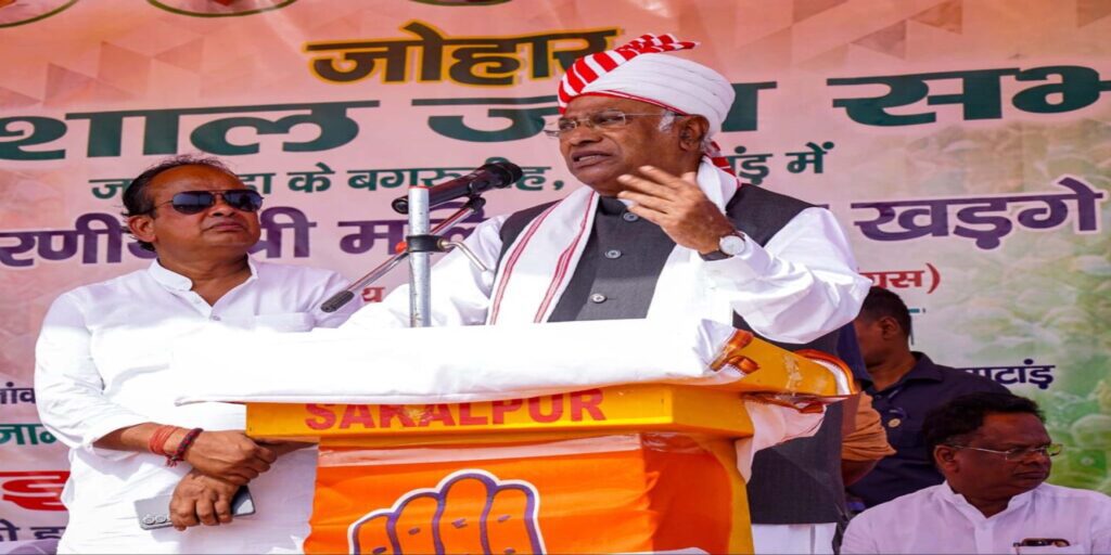 रांची। कांग्रेस अध्यक्ष मल्लिकार्जुन खरगे ने शनिवार को झारखंड के अपने दौरे के दौरान भाजपा पर तीखा हमला करते हुए आरोप लगाया कि वह राज्य में सरकार बनाने के बाद झारखंड के प्राकृतिक संसाधनों को लूटने का प्रयास करेगी। उन्होंने कहा, “भाजपा कहती है, ‘बंट गए तो कट गए’, लेकिन मैं कहता हूं, ‘डर गए तो मर गए’। उन्हाेंने कहा कि कैबिनेट मंत्री का दर्जा होने के बावजूद विपक्ष के नेता राहुल गांधी को हवाई अड्डे के आरक्षित लाउंज तक उपलब्ध नहीं कराए जा रहे हैं।