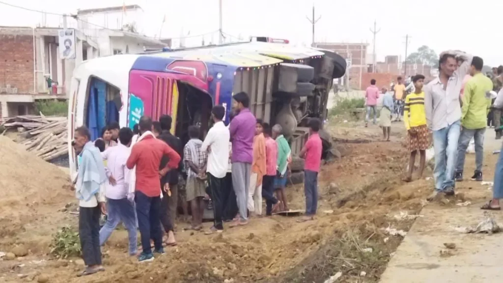 बताया जाता है कि उक्त यात्री बस कोलकाता से रविवार संध्या को उत्तर भारत के विभिन्न तीर्थ स्थलों के लिए 16 दिनों के लिए निकली थी। दुर्घटना के संबंध में बताया जाता है कि तेज गति से गुजर रही थी तभी अचानक अनियंत्रित होकर सड़क के किनारे गड्ढे के कारण पलट गई।