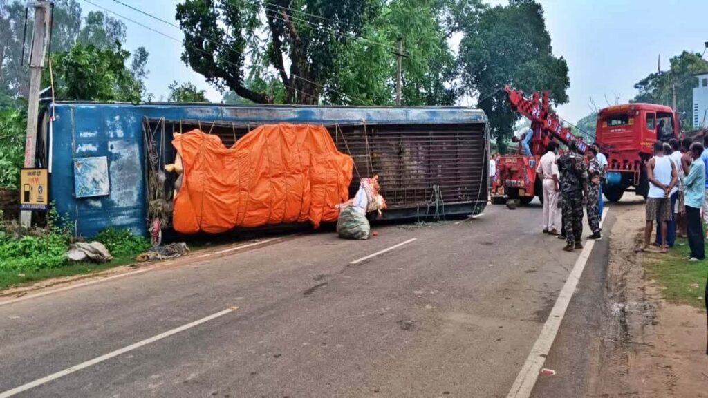 देवघर। देवघर के बाबाधाम से जलाभिषेक कर बुधवार की अहले सुबह रांची लौट रहे शिवभक्तों से भरी बस अनियंत्रित होकर गिरिडीह जिले के सरिया थाना क्षेत्र के नीमाटांड़ के पास पलट गई।घटना में कुछ लोगों को मामूली चोटें आई हैं। घटना के बाद कुछ देर के लिए अफरा-तफरी का माहौल रहा।