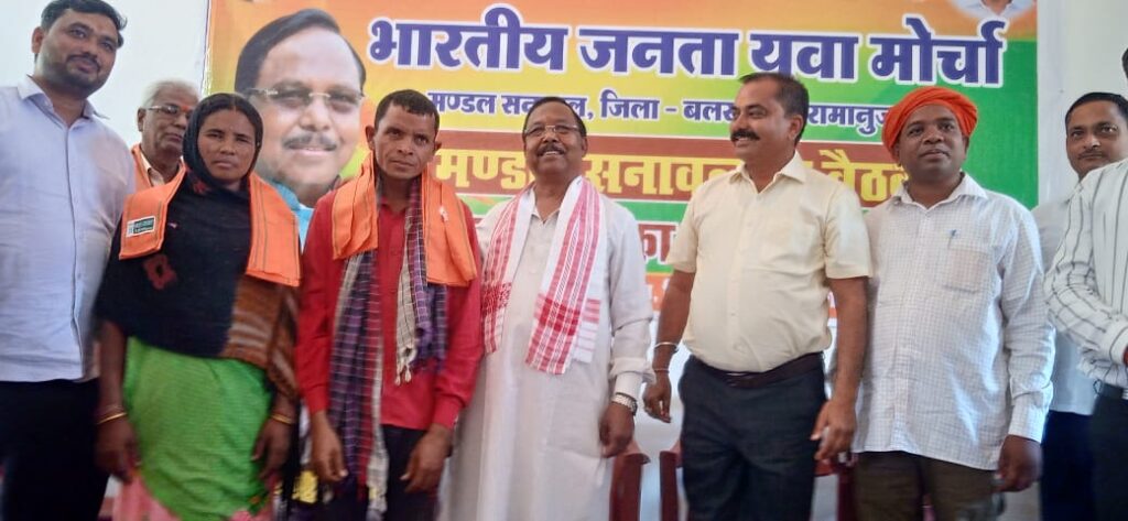 रामविचार नेताम की ओर से गमछा भेंट कर दोनों को भाजपा में स्वागत किया गया। इसमें मुख्य रूप से जिला पंचायत सदस्य रामचरित सोनवानि, अनुसूचित जनजाति के प्रदेश आमंत्रित सदस्य जिला प्रतिनिधि सनावल सरपंच मुंशीराम मंडल, अध्यक्ष सुखदेव सिंह, भाजपा जिला मंत्री मुंद्रिका सिंह, जिला कार्य समिति सदस्य बलवंत सिंह, माहामंत्री नारद यादव, कृपाल कुशवाहा, हजारों कार्यकर्ताओं के समक्ष सदस्यता ग्रहण किया।