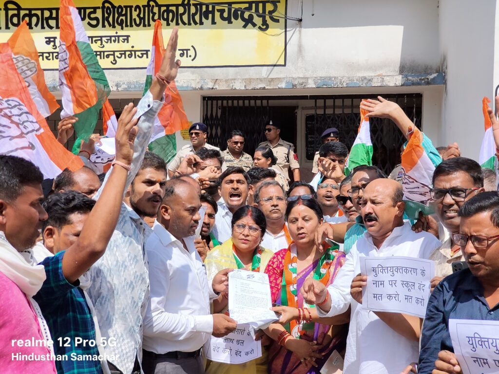 बलरामपुर, विष्णु पाण्डेय। बलरामपुर जिले के रामानुजगंज और रामचंद्रपुर ब्लॉक कांग्रेस कमेटी ने आज गुरुवार को युक्तियुक्तकरण के विरोध में बीईओ कार्यालय का घेराव किया। कार्यालय घेराव के लिए दोनों ब्लॉक से कांग्रेसी नेता शामिल हुए। घेराव करने के बाद उन्होंने तसीलदार मनोज पैकरा को राज्यपाल के नाम ज्ञापन सौंपा है।