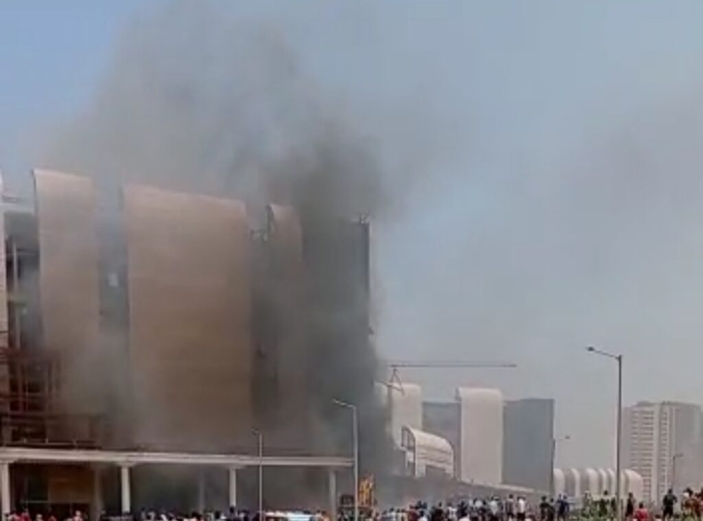 निर्माणाधीन हिस्से में लगी आग