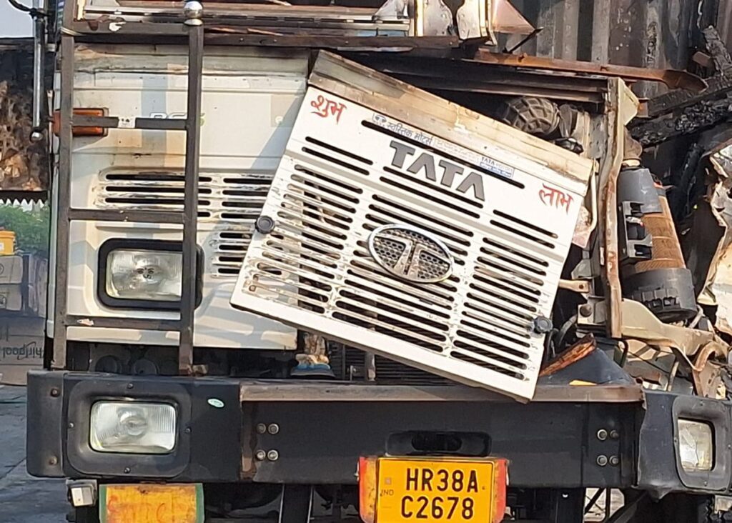 इस दौरान कंटेनर का अगला हिस्सा क्षतिग्रस्त हो गया। लेकिन चालक ने ध्यान नहीं दिया। जब वो बेफिक्र हो कर आगे बढ़ा, तो कांटेनर से धुंआ निकलना शुरू हो गया और पलभर में ही कंटेनर में भीषन आग की लपटें उठने लगी । हालांकि आग लगने का कारण शार्ट सर्किट बताया जा रहा है ।