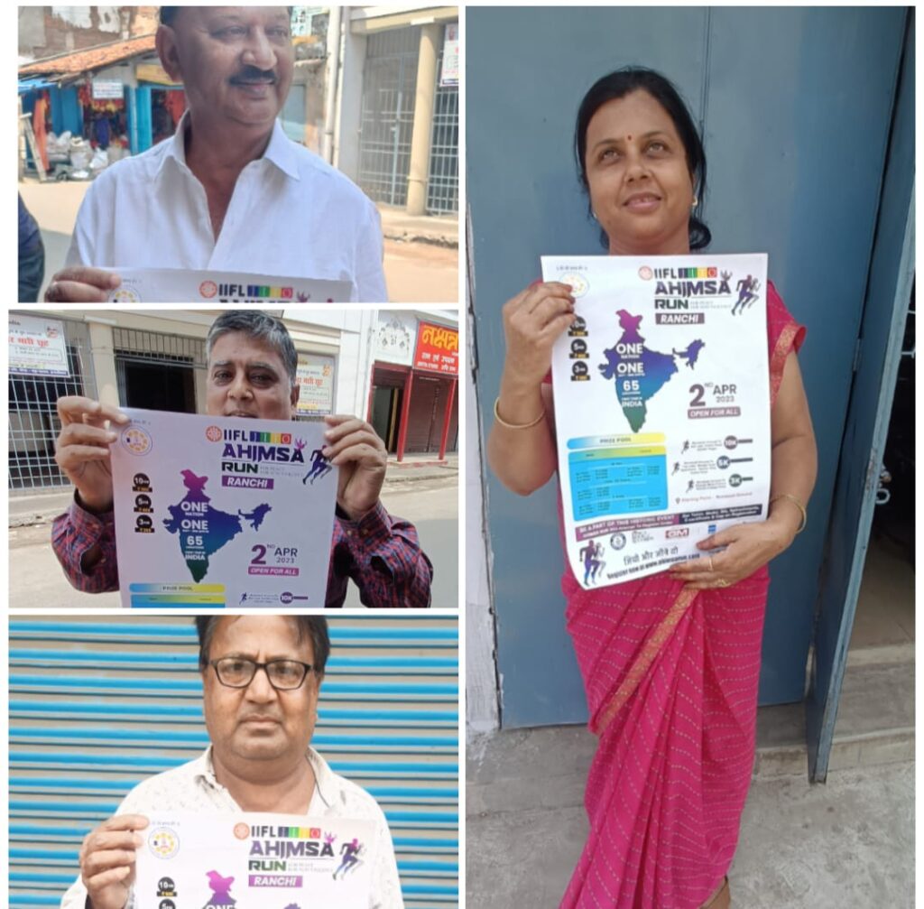 अहिंसा रन के लिए हमारे झारखंड के राज्यपाल, मुख्यमंत्री, सांसद, विधायक, स्पोर्ट्समैन व सभी जगह के गणमान्य व्यक्ति ने इस दौड़ में शामिल होने के लिए अपील किए हैं और कहां कि अधिक से अधिक लोग इसमें शामिल हो और भगवान महावीर के संदेश को जन-जन तक पहुंचाने का अनुरोध किया। यह सिर्फ भारत में नहीं विदेशों में भी यहअहिंसा रन होगा। कुल मिलाकर 25 देश इस अहिंसा रन में भाग लेंगे,यह कार्यक्रम भारत में पहली बार हो रहा है। गिनीज बुक ऑफ वर्ल्ड रिकॉर्ड में अहिंसा रन को जोड़ा जाएगा। रांची जीतो चैप्टर की टीम पूरी जोर-शोर से तैयारियां के लिए लगी हुई है। प्रियंका पाटनी अध्यक्षा जीतो लेडीस विंग ने जानकारी दी की झारखंड के रांची में करीब 5000 लोग इस दौड़ में शामिल होंगे।