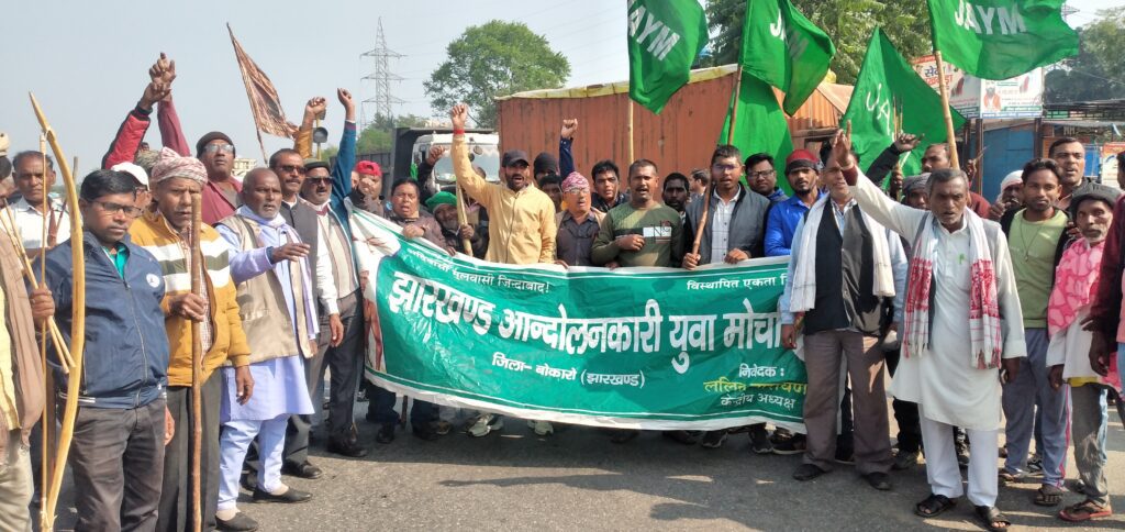 बोकारो। झारखंड आंदोलनकारी संघर्ष मोर्चा के बैनर तले शनिवार को मोर्चा के सदस्यों ने झारखंड आंदोलनकारीयों के पहचान और अधिकार से संबंधित अपने पांच सूत्री मांग को लेकर जैनामोड एनएच-23 फोरलेन चौक को जाम कर दिया।