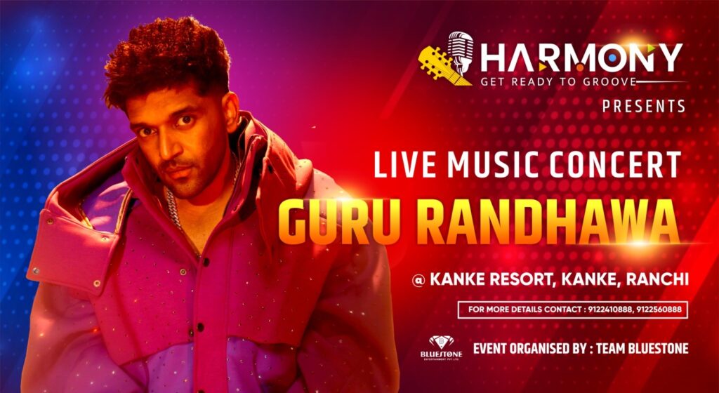 आयोजक ब्लूस्टोन के सदस्य आशीष ने बताया कि कांके रेज़ॉर्ट में आगामी 17 जून को भव्य स्टेज प्रोग्राम का आयोजन किया जा रहा है. इसमें बॉलीवुड के सिंगर गुरु रंधावा को बुलाया गया है. गुरु रंधावा यहां की शाम युवाओं के नाम करने आएंगे. यह कार्यक्रम पॉप बेस्ड होगा. गुरु रंधावा ने छोटे से शहर से निकल कर अपनी सिंगिंग से देश और दुनिया में नाम और शोहरत कमाया है. उनको देखकर रांची के यूथ और लोकल म्यूजिकल ग्रुप व सिंगर भी बहुत कुछ सीख पाएंगे और प्रोत्साहित होंगे.