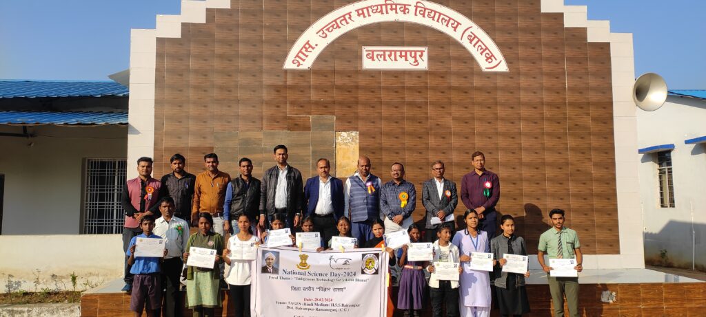 बलरामपुर। आज राष्ट्रीय विज्ञान दिवस के अवसर पर बलरामपुर के स्वामी आत्मानंद हिन्दी मीडियम स्कूल में जिला स्तरीय विज्ञान उत्सव कार्यक्रम का आयोजन किया गया जिसमें जिले भर के विभिन्न स्कूलों के बच्चों ने विज्ञान से संबंधित प्रदर्शनी लगाई. कार्यक्रम आयोजन का उद्देश्य राष्ट्र के वैज्ञानिक आधार को मजबूत करना एवं भविष्य की पीढ़ियों को वैज्ञानिक प्रगति के योगदान में प्रेरित है.