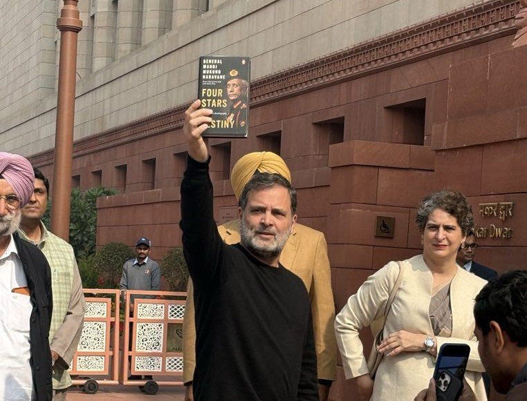नई दिल्ली, एजेंसी। पूर्व थलसेना प्रमुख एमएम नरवणे की एक अप्रकाशित पुस्तक को लेकर संसद में चल रहा विवाद बुधवार को और गहरा गया, जब कांग्रेस नेता राहुल गांधी वही किताब हाथ में लेकर संसद परिसर पहुंचे। राहुल गांधी के इस कदम से सत्तापक्ष और विपक्ष के बीच टकराव और तीखा हो गया।