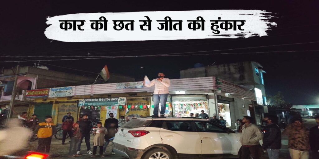 बलरामपुर। आगामी 11 फरवरी से नगरीय निकाय चुनाव के लिए मतदान होना है। रामानुजगंज नगर पालिका अध्यक्ष पद के लिए निर्दलीय प्रत्याशी राहुलजीत सिंह चुनावी रण में सुबह से देर रात तक खूब पसीना बहा रहे है। शनिवार शाम को अनोखे अंदाज से मतदाताओं को अपने पक्ष में वोट देने की अपील कर रहे है। कार की छत पर चढ़कर अपनी घोषणाओं के बारे में लोगों को जानकारी दी और विजयी बनाने की अपील की।