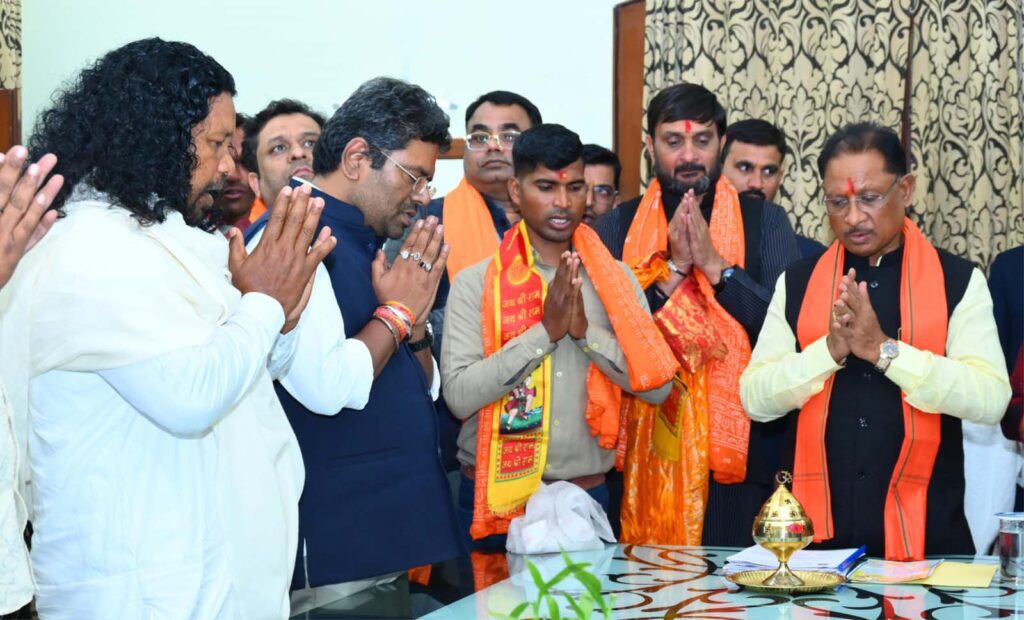 श्री आयोध्याधाम से पावन ज्योति लेकर छत्तीसगढ़ पहुंचे रामभक्तों ने मुख्यमंत्री साय को बताया कि रामभक्तों का सात सदस्यीय दल रामजन्मभूमि से ज्योति कलश लाने गया था। उल्लेखनीय है कि दल में मुस्लिम सम्प्रदाय से भी भिलाई निवासी रज्जन अकील खान और शाहनवाज ने अपनी सहभागिता दी है। दल में प्रग्नेश महेंद्र भाई पटेल, राजू साहू, अरविंद पटेल, आकाश पाल आदि शामिल रहे। मुख्यमंत्री को रामभक्तों द्वारा श्री आयोध्याधाम का प्रसाद भी भेंट किया। इस अवसर रोहित कौशिक, प्रकाश शर्मा, पंडित विकास शास्त्री, टीका राम साहू, राजेश तिवारी, महेश सहित अनेक रामभक्त उपस्थित रहे।