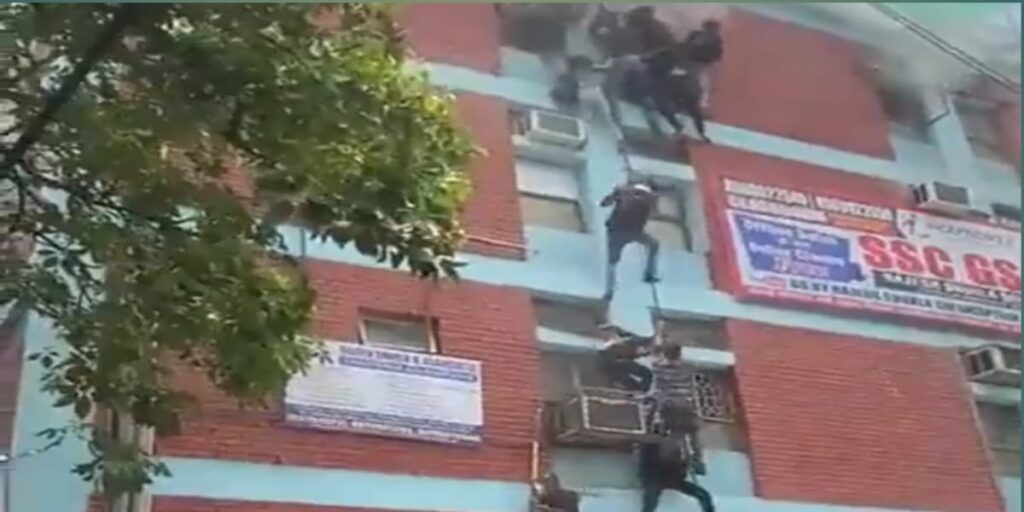 नई दिल्ली: मुखर्जी नगर इलाके की संस्कृति कोचिंग सेंटर में गुरुवार दोपहर 12 बजे आग लग गई। इससे वहां मौजूद स्टूडेंट्स में अफरा-तफरी मच गई। जान बचाने के लिए छात्र बिल्डिंग की तीसरी मंजिल से तार के सहारे नीचे उतरते दिखे। कुछ ने खिड़कियों से कूदकर जान बचाई। हादसा बत्रा सिनेमा के पास ज्ञाना बिल्डिंग में हुआ। सोशल मीडिया पर इस हादसे के वीडियो वायरल हो रहे हैं।