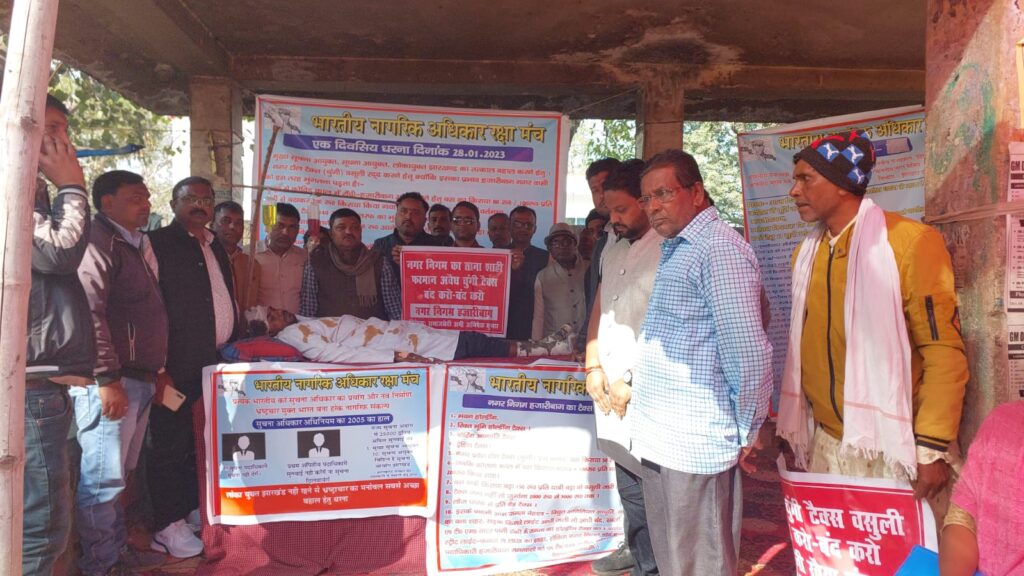 धरना के जरिए हजारीबाग नगर निगम के जरिए चुंगी टैक्स का भी विरोध किया गया. टैक्स वापस लेने की मांग की गई. धरना के जरिए बताया गया कि टैक्स से आम लोगों पर अतिरिक्त बोझ पड़ रहा है. चुंगी टैक्स के अलावा अब निगम लॉज मालिकों से प्रति बेड निर्णय लिया है जो सरासर गलत है.